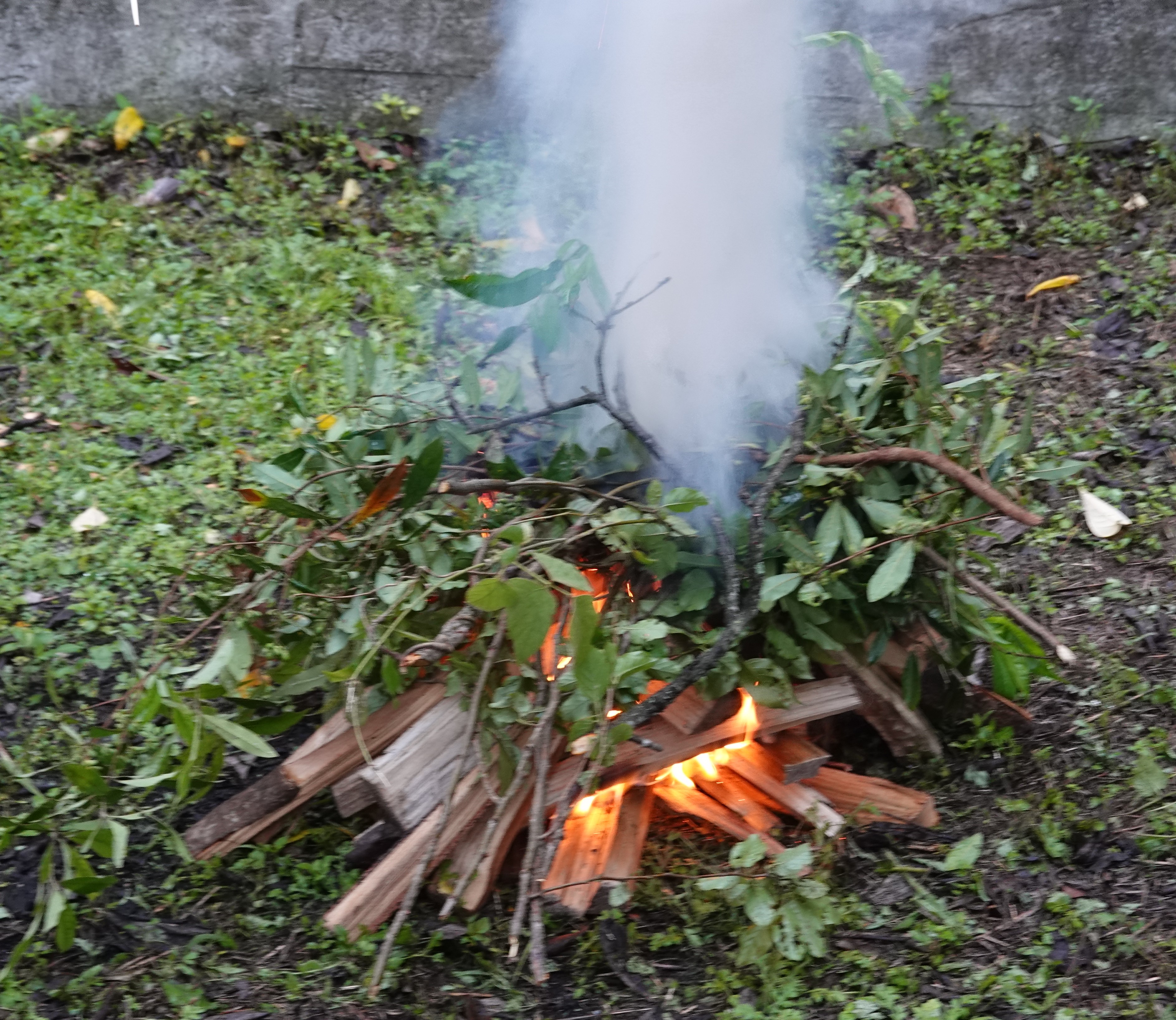 抵達祭場後,隨即進行生火儀式。第一聲鳴槍搭配升起的煙霧,作為對祖靈、自然萬物的宣告,表示部落即將展開祭典。火堆所使用的木材皆有特定意涵,多為桃木、李樹、赤楊、羅氏鹽膚木或大葉黃肉楠。透過火與煙的媒介,族人與看不見的靈界建立起精神連結。