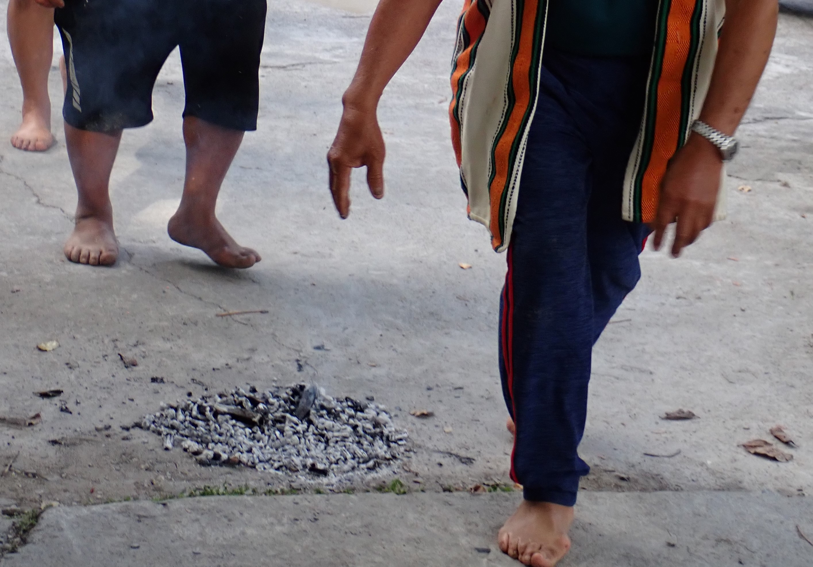 射耳祭儀的過程中,除了祭場內的升火儀式,當祭場內的儀式即將結束,聽到祭場槍聲的婦女,必需準備在祭祀人員前往祭場外集合處的必經之路上取材升火,等待族人回來進行炭火淨身儀式,防止祭場靈氣帶到家中使家人生病。